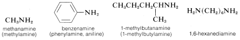 The word “amine” is derived from ammonia, and the class of compounds known as amines therefore are commonly named as substituted ammonias. In this system, primary amines (RNH2), having only one substituent on nitrogen, are named with the substituent as a prefix. More systematic nomenclature appends -amine to the longest chain, as for alcohols: