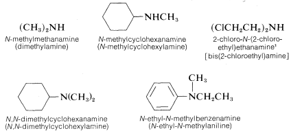 - Finally, a common system for simple amines names each alkyl substituent on nitrogen in alphabetical order, followed by the suffix -amine. These are the names given in the last row (colored black).