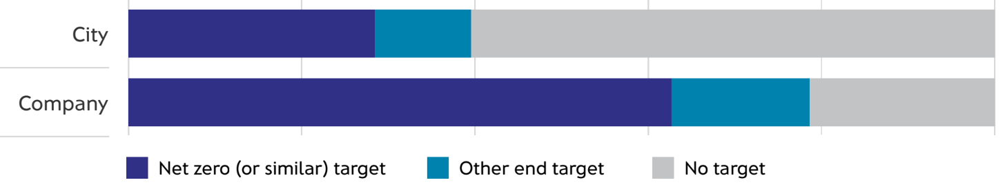 Since 2019, there has been a large upswing of commitments made by cities, corporations, and companies to reduce GHG emissions. These commitments have synergistic effects. The fulfilling of commitments by utilities will allow cities and companies who consume the electricity produced by utilities to more easily reach their commitments. Likewise, city and corporate REC/PPAs reduce the uncertainty surrounding renewable investments for utilities. As contributors to GHG emissions in cities, the fulfilling of corporate commitments contribute to the carbon balance sheets of cities where they or their suppliers operate.